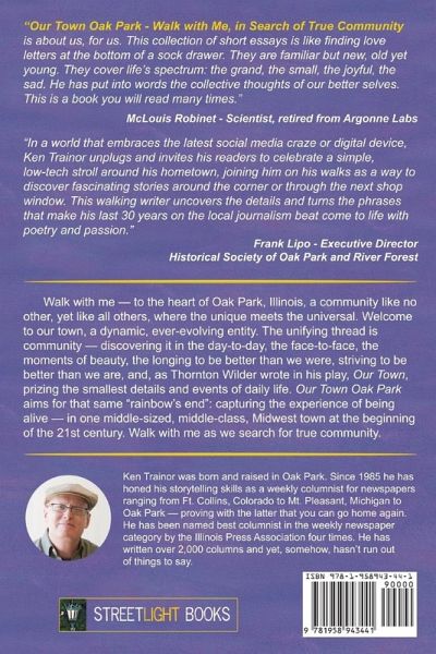 Walk with me - to the heart of Oak Park, Illinois, a community like no other, yet like all others, where the unique meets the universal. Welcome to our town, a dynamic, ever-evolving entity. The unifying thread is community - discovering it in the day-to-day, the face-to-face, the moments of beauty, the longing to be better than we were, striving to be better than we are, and, as Thornton Wilder wrote in his play, Our Town, prizing the smallest details and events of daily life. Our Town Oak Park aims for that same "rainbow's end": capturing the experience of being alive - in one middle-sized, middle-class, Midwest town at the beginning of the 21st century. True community is more than individuals living next to one another. It is the alchemy that takes place when we interact and become better individuals for doing so. Oak Park is an ongoing experiment to see if a mere collection of individuals can be diverse yet whole, to the benefit of everyone. And if one community can accomplish this, then all can. "We" are not some static set piece, some staged play, some museum diorama. You and I are part of a greater whole yet to come. We're not there yet, but we're getting there, moment by moment. My hope is that you'll find many such moments in this book. This has been both a personal and collective journey. Oak Park has worked hard over the past 70 years to foster community. Not some blissful utopia. Moving toward true community is hard work, but worth the struggle. We're pointing the way because we need as many inclusive, equity-aspiring, ever-evolving, good-governing, welcoming communities as possible. My walk has lasted 32 years. Returning to Oak Park, covering the town for the local newspaper, I got to know people I probably never would have met otherwise. Everyone, I soon learned, has a story and everyone's story is worth telling. Cumulatively, those stories tell who we are - in our living, loving, and dying. And ever so slowly, I discovered a place of deep belonging. I found my way back home.