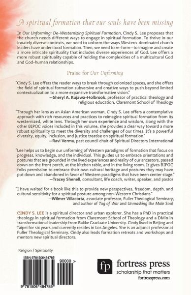 In Our Unforming: De-Westernizing Spiritual Formation, Cindy S. Lee proposes that the church needs to reimagine spiritual formation--to unform the ways Western-dominated church leaders have understood formation and to create a more robust spirituality, one that will hold the complexities of a multicultural God and the God-human relationship.