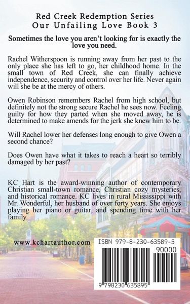 Sometimes the love you aren't looking for is exactly the love you need Rachel Witherspoon is running away from her past to the only place she has left to go, her childhood home. In the small town of Red Creek, she can finally achieve independence, security and control over her life. Never again will she be at the mercy of others. Owen Robinson remembers Rachel from high school, but definitely not the strong secure Rachel he sees now. Feeling guilty for how they parted when she moved away, he is determined to make amends for the jerk she knew him to be. Will Rachel lower her defenses long enough to give Owen a second chance? Does Owen have what it takes to reach a heart so terribly damaged by her past? Great for readers of Valerie M. Bodden and Jessie Gussman. Perfect for fans of Hallmark movies and Sweet Home Alabama.