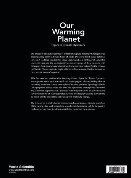 The processes and consequences of climate change are extremely heterogeneous, encompassing many different fields of study. Dr David Rind in his career at the NASA Goddard Institute for Space Studies and as a professor at Columbia University has had the opportunity to explore many of these subjects with colleagues from these diverse disciplines. It was therefore natural for the Lectures in Climate Change series to begin with his colleagues contributing lectures on their specific areas of expertise. This first volume, entitled Our Warming Planet: Topics in Climate Dynamics, encompasses topics such as natural and anthropogenic climate forcing, climate modeling, radiation, clouds, atmospheric dynamics/storms, hydrology, clouds, the cryosphere, paleoclimate, sea level rise, agriculture, atmospheric chemistry, and climate change education. Included with this publication are downloadable PowerPoint slides of each lecture for students and teachers around the world to be better able to understand various aspects of climate change. The lectures on climate change processes and consequences provide snapshots of the cutting-edge work being done to understand what may well be the greatest challenge of our time, in a form suitable for classroom presentation.