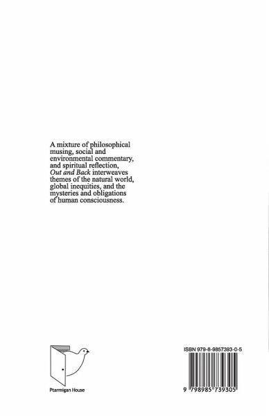 Out and Back is comprised of 14 poems and 11 short essays. The work moves between verse and prose, and between the outer world of experience and the interior personal journey of gratitude and meaning-making. A mix of philosophical musing, social and environmental commentary, and spiritual reflection, the book interweaves themes of the natural world, global inequities, and the mysteries and obligations of human consciousness. 60 pages