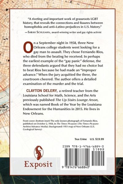 On a September night in 1958, three New Orleans college students went looking for a gay man to assault. They chose Fernando Rios, who died from the beating he received. In perhaps the earliest example of the "gay panic" defense, the three defendants argued that they had no choice but to beat Rios because he had made an "improper advance." When the jury acquitted the three, the courtroom cheered. The author offers a detailed examination of the murder and the trial.