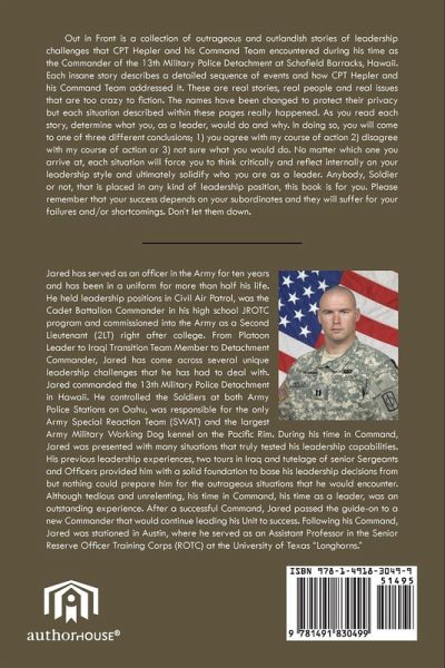 Out in Front is a collection of outrageous and outlandish stories of leadership challenges that CPT Hepler and his Command Team encountered during his time as the Commander of the 13th Military Police Detachment at Schofield Barracks, Hawaii. Each insane story describes a detailed sequence of events and how CPT Hepler and his Command Team addressed it. These are real stories, real people and real issues that are too crazy to fiction. The names have been changed to protect their privacy but each situation described within these pages really happened. As you read each story, determine what you, as a leader, would do and why. In doing so, you will come to one of three different conclusions; 1) you agree with my course of action 2) disagree with my course of action or 3) not sure what you would do. No matter which one you arrive at, each situation will force you to think critically and reflect internally on your leadership style and ultimately solidify who you are as a leader. Anybody, Soldier or not, that is placed in any kind of leadership position, this book is for you. Please remember that your success depends on your subordinates and they will suffer for your failures and/or shortcomings. Don't let them down.