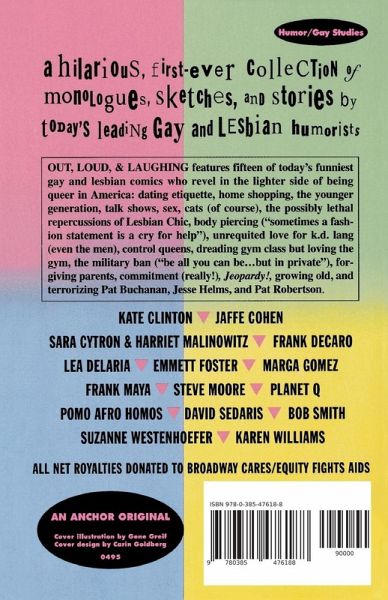 Hilarious and socially minded, this book features 15 of today's funniest gay and lesbian humorists, from stand-up comics like Kate Clinton and Frank Maya to the performance work of the Pomo Afro Homos and Marga Gomez to the queer Addison and Steele of the 1990s, Frank DeCaro and David Sedaris.