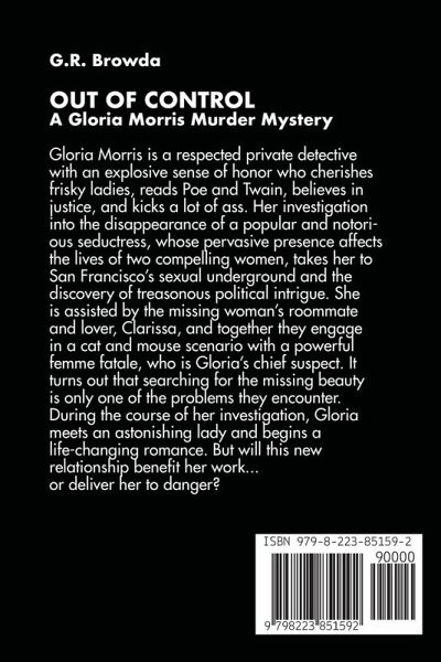 MEET GLORIA MORRIS, BADASS P.I. EXTRAORDINAIRE Gloria Morris is a respected private detective with an explosive sense of honor who cherishes frisky ladies, reads Poe and Twain, believes in justice, and kicks a lot of ass. Her investigation into the disappearance of a popular and notorious seductress, whose pervasive presence affects the lives of two compelling women, takes her to San Francisco's sexual underground and the discovery of treasonous political intrigue. She is assisted by the missing woman's roommate and lover, Clarissa, and together they engage in a cat and mouse scenario with a powerful femme fatale, who is Gloria's chief suspect. It turns out that searching for the missing beauty is only one of the problems they encounter. During the course of her investigation, Gloria meets an astonishing lady and begins a life-changing romance. But will this new relationship benefit her work … or deliver her to danger?