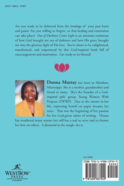 Are you ready to be delivered from the bondage of your past hurts and pains? Are you willing to forgive, so that healing and restoration can take place? Out of Darkness Came Light is an awesome testimony of how God brought me out of darkness and how His grace brought me into the glorious light of His love. You're about to be enlightened, transformed, and empowered by this God-inspired book full of encouragement and motivation. Get ready to be blessed!