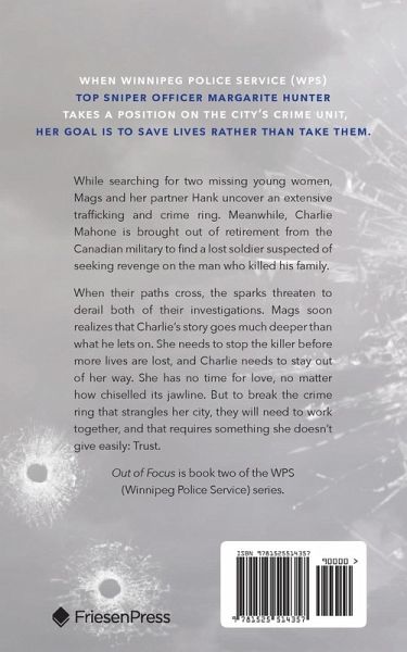 When Winnipeg Police Service (WPS) top sniper officer Margarite Hunter takes a position on the city's crime unit, her goal is to save lives rather than take them. While searching for two missing young women, Mags and her partner Hank uncover an extensive trafficking and crime ring. Meanwhile, Charlie Mahone is brought out of retirement from the Canadian military to find a lost soldier suspected of seeking revenge on the man who killed his family. When their paths cross, the sparks threaten to derail both of their investigations. Mags soon realizes that Charlie's story goes much deeper than what he lets on. She needs to stop the killer before more lives are lost, and Charlie needs to stay out of her way. She has no time for love, no matter how chiselled its jawline. But to break the crime ring that strangles her city, they will need to work together, and that requires something she doesn't give easily: Trust. Out of Focus is book two of the WPS (Winnipeg Police Service) series.