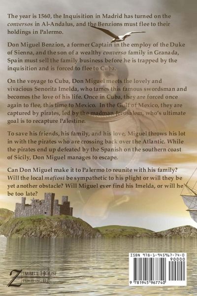The year is 1560, the Inquisition in Madrid has turned on the conversos in Al-Andalus, and the Benzions must flee to their holdings in Palermo. Don Miguel Benzion, a former Captain in the employ of the Duke of Sienna, and the son of a wealthy converso family in Granada, Spain must sell the family business before he is trapped by the inquisition and is forced to flee to Cuba. On the voyage to Cuba, Don Miguel meets the lovely and vivacious Senorita Imelda, who tames this famous swordsman and becomes the love of his life. Once in Cuba, they are forced once again to flee, this time to Mexico. In the Gulf of Mexico, they are captured by pirates, led by the madman Jerusalem, who's ultimate goal is to recapture Palestine. To save his friends, his family, and his love, Miguel throws his lot in with the pirates. While the pirates end up defeated by the Spanish on the southern coast of Sicily, Don Miguel manages to escape. Can Don Miguel make it to Palermo to reunite with his family? Will the local mafiosi be sympathetic to his plight or will they be yet another obstacle? Will Miguel ever find his Imelda, or will he be too late?