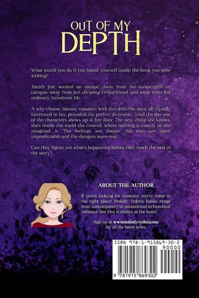 What would you do if you found yourself inside the book you were writing? Tanith just wanted an escape. Away from the mean girls on campus, away from her cheating ex-boyfriend, and away from her ordinary, humdrum life. A why-choose fantasy romance with five different men, all equally interested in her, provided the perfect diversion... until the day one of the characters shows up at her door. The next thing she knows, she's inside the world she created, where nothing is exactly as she imagined it. The feelings are deeper, the men are more unpredictable and the dangers more real. Can they figure out what's happening before they reach the end of the story? Out of My Depth is a light-hearted, standalone, why-choose fantasy romance, suitable for readers over the age of 18.