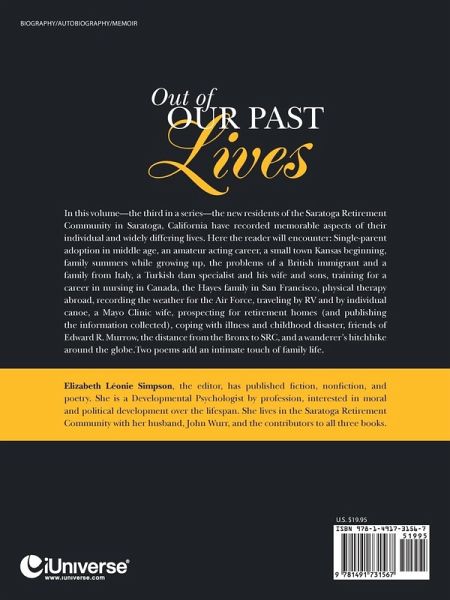 In this volume-the third in a series-the new residents of the Saratoga Retirement Community in Saratoga, California have recorded memorable aspects of their individual and widely differing lives. Here the reader will encounter: Single-parent adoption in middle age, an amateur acting career, a small town Kansas beginning, family summers while growing up, the problems of a British immigrant and a family from Italy, a Turkish dam specialist and his wife and sons, training for a career in nursing in Canada, the Hayes family in San Francisco, physical therapy abroad, recording the weather for the Air Force, traveling by RV and by individual canoe, a Mayo Clinic wife, prospecting for retirement homes (and publishing the information collected), coping with illness and childhood disaster, friends of Edward R. Murrow, the distance from the Bronx to SRC, and a wanderer's hitchhike around the globe.Two poems add an intimate touch of family life.