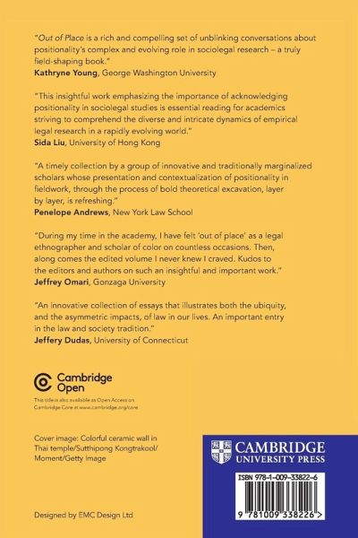 1. Introduction: the power of positionality Mark Fathi Massoud; 2. Research as accompaniment: reflections on objectivity, ethics, and emotions Leisy J. Abrego; 3. Pretty and young in places where people get killed in broad daylight Sindiso Mnisi Weeks; 4. Out of place studying China's sex industry Margaret L. Boittin; 5. Feeling at home outside: embracing out-of-placeness in the study of law and resistance Lynette J. Chua; 6. Out of place in an Indian court: notes on researching rape in a district court in gujarat (1996-1998) Pratiksha Baxi; 7. At odds with everything around me: vulnerability politics and its (out of) place in the socio-legal academy Swethaa S. Ballakrishnen; 8. Trigueño International law: on (most of) the world being (always, somehow) out of place Luis Eslava; 9. Becoming a familiar outsider: multi-sited and multi-temporal research in plural legal contexts Keebet von Benda-Beckmann.