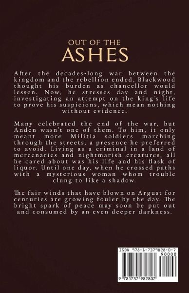 After the decades-long war between the kingdom and the rebellion ended, Blackwood thought his burden as chancellor would lessen. Now, he stresses day and night investigating an attempt on the king's life to prove his suspicions, which mean nothing without evidence. Desperate, he resorts to summoning the greatest mind in the continent. Unfortunately for him, the one to possess it is his greatest adversary in the court of Parliament. Many celebrated the end of the war, but Anden wasn't one of them. To him, it only meant more Militia soldiers marching through the streets, a presence he preferred to avoid. Living as a criminal in a land of mercenaries and nightmarish creatures, all he cared about was his life and his flask of liquor. Until one day, he crossed paths with a mysterious woman whom trouble clung to like a shadow. The fair winds that have blown on Argust for centuries are growing fouler by the day. The bright spark of peace may soon be put out and consumed by an even deeper darkness.