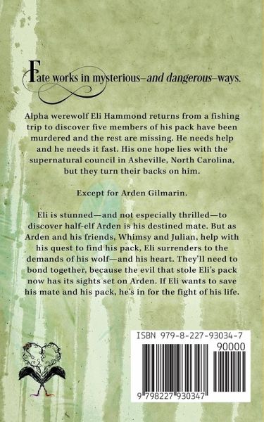 Fate works in mysterious-and dangerous-ways. Alpha werewolf Eli Hammond returns from a fishing trip to discover five members of his pack have been murdered and the rest are missing. He needs help and he needs it fast. His one hope lies with the supernatural council in Asheville, North Carolina, but they turn their backs on him. Except for Arden Gilmarin. Eli is stunned-and not especially thrilled-to discover half-elf Arden is his destined mate. But as Arden and his friends, Whimsy and Julian, help with his quest to find his pack, Eli surrenders to the demands of his wolf-and his heart. They'll need to bond together, because the evil that stole Eli's pack now has its sights set on Arden. If Eli wants to save his mate and his pack, he's in for the fight of his life.