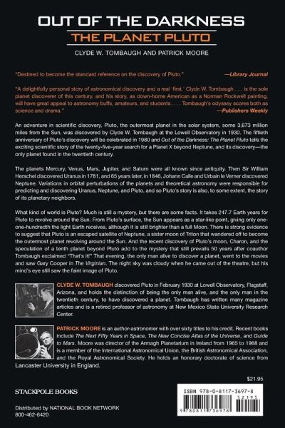 An adventure in scientific discovery Pluto, the farthermost planet in the solar system, some 3,673 million mites from the Sun, was discovered by Clyde Tombaugh at the Lowell Observatory in 1930. The fiftieth anniversary of Pluto's discovery will be celebrated in 1980 and OUT OF THE DARKNESS: THE PLANET PLUTO tells the exciting scientific story of the twenty-five year search for a planet X beyond Neptune, and its discovery-the only planet found in the twentieth century. The planets Mercury, Venus. Mars, Jupiter, and Saturn were all known since antiquity. Then Sir William Herschel discovered Uranus in 1781, and 65 years later, in 1846, Johann Calle and Urbain le Verner discovered Neptune. Variations in orbital perturbations of the planets and theoretical astronomy were responsible for predicting and discovering the three outermost planets (Uranus, Neptune, and Pluto) and so Pluto's story is also, to some extent, the story of its planetary neighbors. What kind of world is Pluto? Much is still a mystery (its exact size, for instance), but there are some facts. It takes 247.7 years for Pluto to revolve around the sun. From Pluto's surface, the Sun appears as a star-like point; giving only on-one-hundredth the light Earth receives, although it is still brighter than a full Moon. There is strong evidence to suggest that Pluto is an escaped satellite of Neptune, a sister moon of Triton that wandered off to become the farthermost planet revolving around the Sun. And the recent discovery of Pluto’s moon, Charon, and the speculation on a tenth planet beyond Pluto add to the mystery that still prevails 50 years after coauthor Clyde Tombaugh exclaimed "That’s it!" when he saw the change of position of a faint object on the photographic plates after examining millions of star images. That evening, the only man alive to discover a planet, went to the movies and saw Gary Cooper in The Virginian. The night sky was cloudy when he came out of the theatre, but his mind’s eye still saw the faint image of Pluto.