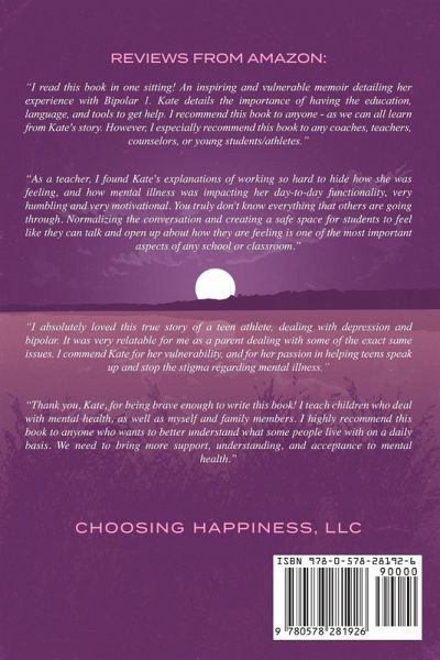 As a senior in high school, I had what many would call an "All-American Life." I was varsity captain in three sports, was named the most athletic female in my highschool, an academic honors student, and, in seven short months, I would be on my way to a Division II college to pursue my education and compete on the cross country and track team. My parents are supportive and married. I have a loving sister. I was truly happy and thankful for the life I had and all the hard work I had put in to get me to where I was. Despite this "All-American" background, nothing had prepared me for the downward spiral that led me to two, two-weeklong psychiatric hospitalization stays and a suicide attempt before those seven months were up. I would later be diagnosed with Bipolar Disorder and, with time, learn to overcome stigma, and eventually find peace and learn to live a successful and meaningful life. If I had a better understanding of what mental illnesses looked like and had the correct resources and language to ask for help, things would not have been so difficult for my younger self. I believe that if my parents and friends had known more about mental health issues I would not have had to go through what I did. I wish there were more awareness and education of how mental health issues can affect even a successful, driven, loved, and supportive kid. I don't want what happened to me to happen to anyone else. I hope by sharing my story I can bring awareness to mental health and give the reader a sense of hope. If people do not share their experiences, how do we learn from one another and help each other along the way?