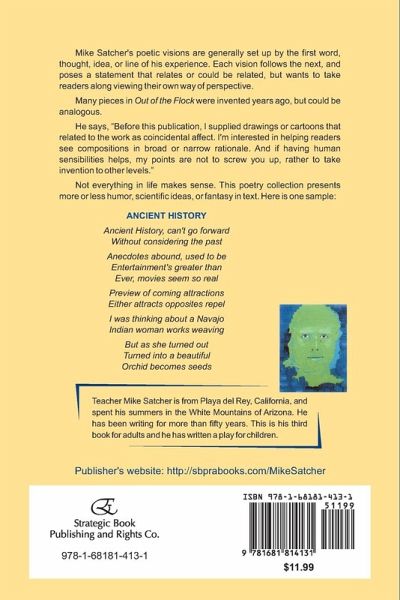 Mike Satcher's poetic visions are generally set up by the first word, thought, idea, or line of his experience. Each vision follows the next, and poses a statement that relates or could be related, but wants to take readers along viewing their own way of perspective. Many pieces in Out of the Flock were invented years ago, but could be analogous. He says, "Before this publication, I supplied drawings or cartoons that related to the work as coincidental affect. I'm interested in helping readers see compositions in broad or narrow rationale. And if having human sensibilities helps, my points are not to screw you up, rather to take invention to other levels." Not everything in life makes sense. This poetry collection presents more or less humor, scientific ideas, or fantasy in text. Here is one sample: Ancient History Ancient History, can't go forward Without considering the past Anecdotes abound, used to be Entertainment's greater than Ever, movies seem so real Preview of coming attractions Either attracts opposites repel I was thinking about a Navajo Indian woman works weaving But as she turned out Turned into a beautiful Orchid becomes seeds Teacher Mike Satcher is from Playa del Rey, California, and spent his summers in the White Mountains of Arizona. He has been writing for more than fifty years. This is his third book for adults and he has written a play for children. Publisher's website: http://sbprabooks.com/MikeSatcher