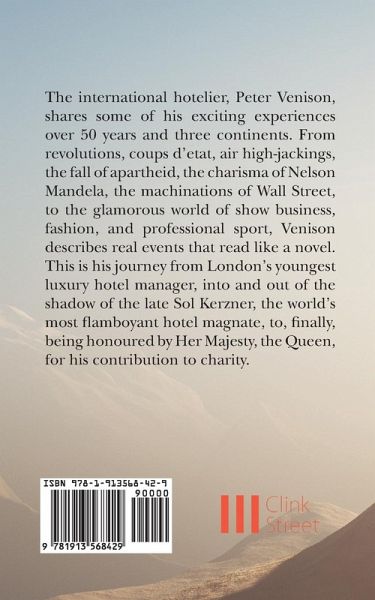The international hotelier, Peter Venison, shares some of his exciting experiences over fifty years and three continents. From revolutions, coups d'etat, air high-jackings, the fall of apartheid, the charisma of Nelson Mandela, the machinations of Wall Street, to the glamorous world of show business, fashion, and professional sport. Venison describes real events that read like a novel. This is his journey from London's youngest luxury hotel manager, into and out of the shadow of the late Sol Kerzner, the world's most flamboyant hotel magnate, to finally being honoured by Her Majesty, the Queen, for his contribution to charity.