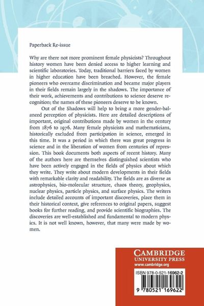 Why are there so few prominent female physicists? Traditionally women have faced barriers in higher education, denying them access to higher learning and scientific laboratories. Today many of these barriers have been breached, but the female pioneers who overcame discrimination and became major players in their fields remain largely in the shadows. Their names deserve to be known and the importance of their work, achievements and contributions to science warrant recognition. Originally published in 2006, Out of the Shadows provides an accurate and authoritative description of the women who made original and important contributions to physics in the twentieth century, documenting their major discoveries and putting their work into its historical context. Each chapter concentrates on a different woman, and is written by a physicist with considerable experience in their field. The book is an ideal reference for anyone with an interest in science and social history.