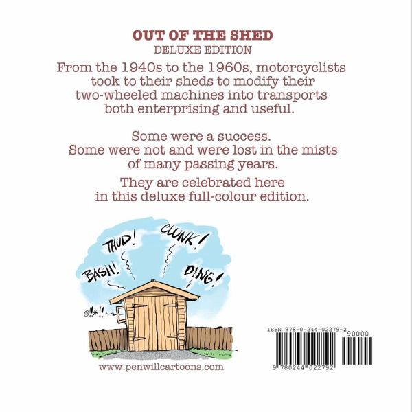 This is a full-colour throughout edition of Out of the Shed, which is the "deluxe" bit. Out of the Shed is quirky take in words and cartoons on motorbike projects that may have been devised and even built in sheds in the Forties, Fifties and Sixties. Actually they probably weren't built anywhere because they are all the daft imaginings of cartoonist Roger Penwill. Based on real bikes of the period this book explores exotic machinery from the BSA Bantam Eggsycle to the Vincent Grey Flash Rocket. This is a book for motorbike enthusiasts and non-enthusiasts but it's not recommended for fans of sheds.
