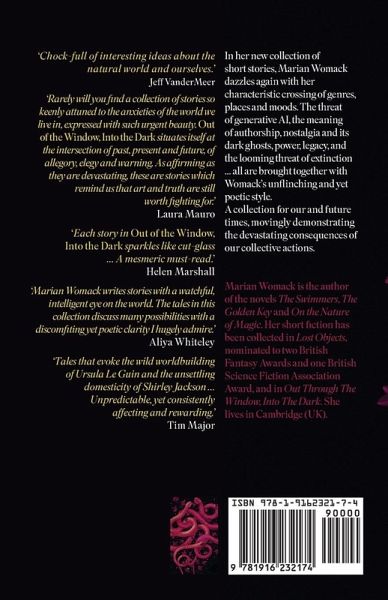 The employee of a library-planet grapples with industrial espionage. The connection between an indie comic and a local boogie-man is discovered by a group of friends. In a future museum of the mind, a nostalgia-addicted curator tries to understand the emotions of 20th century humans. An Anglo-Saxon traveller narrates her journey into the Artic regions to her Queen. A group of friends tries to capture the last pink-footed goose on Planet Earth... Marian Womack's new collection of short stories shows us how the then and the now, the future and the past, are made of the same particles. Loneliness, nostalgia and its dark ghosts, and the possibilities for humanity if technology and preservation dovetail, are brought together with Womack's characteristic crossing of genres, places and moods. Out Through the Window, Into the Dark is a collection for our and future times, movingly demonstrating the devastating consequences of our collective actions.