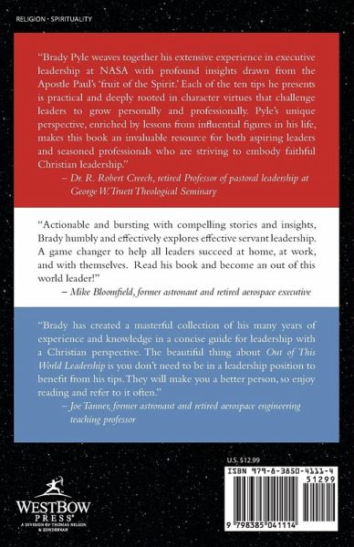 Are you seeking to amplify your influence and lead with lasting impact? Brady Pyle draws on his extensive executive experience at NASA and the timeless virtues outlined in Apostle Paul's Fruit of the Spirit to inspire you to become the leader you were meant to be. The author shares ten powerful, character-driven tips that inspire both personal and professional growth. Get insights on how to: enjoy the journey as you seek success and fulfillment; resolve conflicts with others in your life; help others achieve lasting victory; prepare for looming challenges. This book is a treasure trove of wisdom, seamlessly blending practical advice with spiritual insights and lessons from influential mentors. Whether you're an aspiring leader or an experienced professional, you'll discover how to transcend traditional leadership boundaries and lead with purpose and integrity with the heartfelt stories and actionable strategies in Out of This World Leadership.