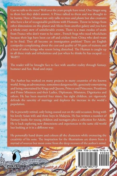 Can we talk to the trees? Well over the years people have tried, One Singer sang to them but they didn't answer. A Prince talked to them and was thought to be barmy. Here a Human not only talks to trees and plants but also creatures who have a lot of recognisable problems with Humans. Throw in beings from other dimensions on this planet and Aliens from another galaxy and you have a whole crazy stew of unbelievable events. There is a mass exodus of snails from France who don't want to be eaten , French frogs who need wheelchairs because their legs have been cut off and crickets from China who don't want to be fried. They all become an immigration problem! There are English centipedes complaining about the cost and quality of 50 pairs of trainers and a host of other beings who resent being disturbed. The Human is caught up in all these trials and tribulations and just when he thinks he has escaped ..... Well!!?? The reader will be brought face to face with another reality through fantasy, humour and fun. Read and enjoy.