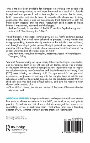The book approaches suicide from the point of view of the suicidal state of mind and is intended to help us understand more about this condition. In its essence suicide is examined as a largely unconscious aggressive act having its roots in a perceived or real experience of thwarted childhood needs.