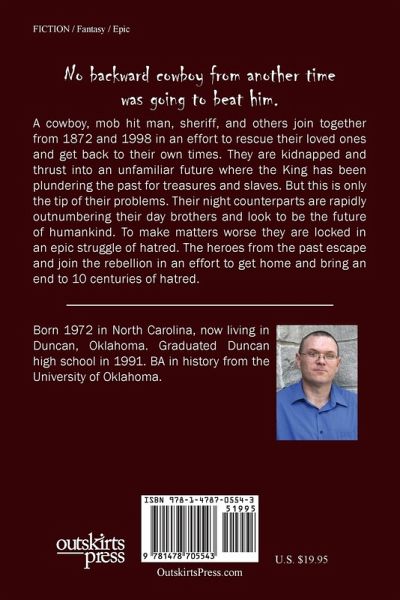 A cowboy, mob hit man, sheriff, and others join together from 1872 and 1998 in an effort to rescue their loved ones and get back to their own times. They are kidnapped and thrust into an unfamiliar future where the King has been plundering the past for treasures and slaves. But this is only the tip of their problems. Their night counterparts are rapidly outnumbering their day brothers and look to be the future of humankind. To make matters worse they are locked in an epic struggle of hatred. The heroes from the past escape and join the rebellion in an effort to get home and bring an end to 10 centuries of hatred.