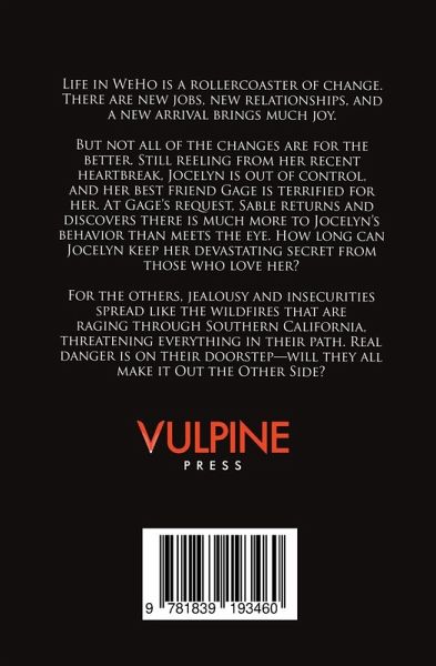 Life in WeHo is a rollercoaster of change. There are new jobs, new relationships, and a new arrival brings much joy. But not all of the changes are for the better. Still reeling from her recent heartbreak, Jocelyn is out of control, and her best friend Gage is terrified for her. At Gage's request, Sable returns and discovers there is much more to Jocelyn's behavior than meets the eye. How long can Jocelyn keep her devastating secret from those who love her? For the others, jealousy and insecurities spread like the wildfires that are raging through Southern California, threatening everything in their path. Real danger is on their doorstepwill they all make it Out the Other Side?
