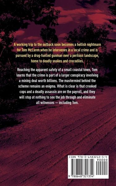 A working trip to the outback soon becomes a hellish nightmare for Tom McLaren when he intervenes in a local crime and is pursued by a drug-fuelled gunman over a perilous landscape, home to deadly snakes and crocodiles. Reaching the apparent safety of a small coastal town, Tom learns that the crime is part of a larger conspiracy involving a mining deal worth billions. The mastermind behind the scheme remains an enigma. What is clear is that crooked cops and a deadly assassin are on the payroll, and they will stop at nothing to see the job through and eliminate all witnesses—including Tom.