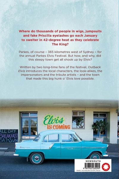 Where do thousands of people in wigs, jumpsuits and fake Priscilla eyelashes go each January to swelter in 42-degree heat as they celebrate The King? Parkes, of course – 365 kilometres west of Sydney – for the annual Parkes Elvis Festival. But how, and why, did this sleepy town get all shook up by Elvis? Written by two long-time fans of the festival, Outback Elvis introduces the local characters, the lookalikes, the impersonators and the tribute artists – and the town that made this big hunk o’ Elvis love possible.