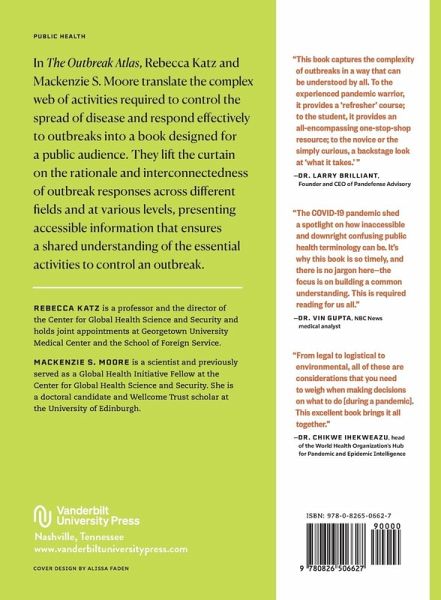 The public has taken a new level of interest in outbreak response since 2020, learning epidemiological terms and seeking information about how to stay prepared in a pandemic. Public health professionals are calling on citizen scientists' participation as outbreaks are increasingly occurring in complex environments, expanding the number of people and types of activities required to control the spread of disease. However, there is no comprehensive source mapping this complexity and detailing needed actions tailored to the public. For years the Georgetown University Center for Global Health Science and Security has curated an interactive online tool for professionals that identifies the activities involved across all phases of an outbreak. The Georgetown Outbreak Activity Library (GOAL) captures what needs to get done, when, and by whom. Now, in The Outbreak Atlas, Rebecca Katz and Mackenzie S. Moore have translated this complex material into a book designed for a public audience. This book provides an overview of outbreak activities alongside compelling case studies and visuals to guide readers through the complexity involved in outbreak preparedness, response, and recovery. It lifts the curtain on the rationale and interconnectedness of outbreak responses across different fields and at various levels, presenting accessible information that ensures a shared understanding of the essential activities to control an outbreak.