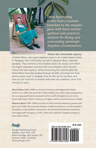 Maria Weiss (1900-1988) was born in Germany and emigrated to South America as a child, first to Argentina and later to Paraguay. Maria married Adolfo Weiss in 1928 and had a son. After contracting leprosy around 1935, she was separated from her husband and son and lived eighteen years in an isolated leper colony called Santa Isabel in Sapucay, Paraguay, until treatment became available. She then joined her husband in the Bruderhof community.