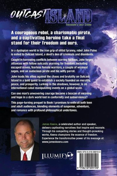 In a dystopian world in the iron grip of elitist tyranny, rebel John Paine is exiled to Outcast Island, a devil's den of criminals and dissidents. Caught in harrowing conflicts between warring factions, John forges alliances with fellow outcasts yearning for freedom, including escaped slaves, fearless female warriors, a couple of wizened sages, and an audacious pirate and his witty parrot. John leads his allies against the chaos and brutality on Outcast Island in a bold quest to establish a society founded on morality, peace, and prosperity. Lurking in the shadows, however, is an international cabal manipulating events on a global scale. Can one man's unwavering courage become a beacon of meaning and hope in a dark world lost in conformity and subservience? This page-turning prequel to Book I promises to enthrall both teen and adult audiences, blending elements of suspense, adventure, and romance with profound philosophical undertones.