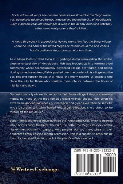Sixteen-year-old Fish--white-haired throwback and embarrassment to his village--is shoved across the border into the Arid Zone and told to vanish. Survival means finding the outlaw brothers who want nothing to do with him, dodging rebel ambushes and Southern raiders, and learning the brutal rules of Megalopolis: the five-walled silver city that trades weather-control for the Zoners' food. Armed with little more than a flute, a hunting knife, and an unshakeable belief that the world's cruel divisions can change, Fish stumbles into a conspiracy for stolen Knowledge Chips--devices the Megas use instead of learning. If he can't outwit city guards, rival scavenger clusters, and the sinister High Mega who covets his strange green eyes, he'll lose far more than his freedom. Pushed over the wall, but never willing to stay in a box, Fish will either rewrite the rules--or die an Outcast.