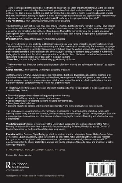 Outdoor Learning in Higher Education is essential reading for educational developers and academic teachers of all disciplines interested in the theory behind, and benefits of, learning outdoors. Filled with practical case studies and backed by recent research, it provides educators with the tools needed to create an effective yet inclusive learning experience for their students beyond the lecture hall or seminar room.