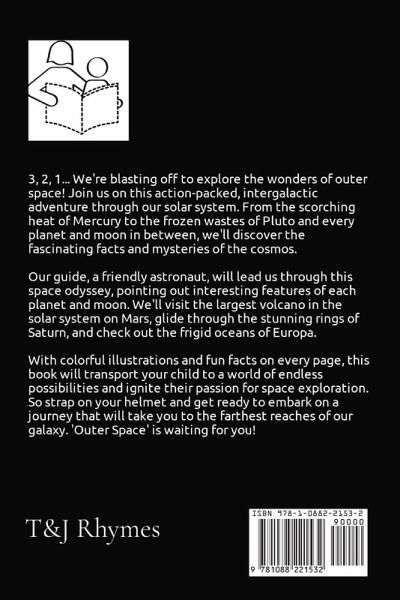 3, 2, 1... We're blasting off to explore the wonders of outer space! Join us on this action-packed, intergalactic adventure through our solar system. From the scorching heat of Mercury to the frozen wastes of Pluto and every planet and moon in between, we'll discover the fascinating facts and mysteries of the cosmos. Our guide, a friendly astronaut, will lead us through this space odyssey, pointing out interesting features of each planet and moon. We'll visit the largest volcano in the solar system on Mars, glide through the stunning rings of Saturn, and check out the frigid oceans of Europa. With colorful illustrations and fun facts on every page, this book will transport your child to a world of endless possibilities and ignite their passion for space exploration. So strap on your helmet and get ready to embark on a journey that will take you to the farthest reaches of our galaxy. 'Outer Space' is waiting for you!
