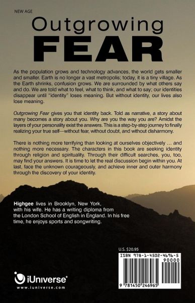 As the population grows and technology advances, the world gets smaller and smaller. Earth is no longer a vast metropolis; today, it is a tiny village. As the Earth shrinks, confusion grows. We are surrounded by what others say and do. We are told what to feel, what to think, and what to say; our identities disappear until "identity" loses meaning. But without identity, our lives also lose meaning. Outgrowing Fear gives you that identity back. Told as narrative, a story about many becomes a story about you. Why are you the way you are? Amidst the layers of your personality exist the answers. This is a step-by-step journey to finally realizing your true self-without fear, without doubt, and without disharmony. There is nothing more terrifying than looking at ourselves objectively ... and nothing more necessary. The characters in this book are seeking identity through religion and spirituality. Through their difficult searches, you, too, may find your answers. It is time to let the real discussion begin within you. At last, face the unknown courageously, and achieve inner and outer harmony through the discovery of your identity.
