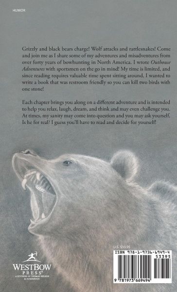 Grizzly and black bears charge! Wolf attacks and rattlesnakes! Come and join me as I share some of my adventures and misadventures from over forty years of bowhunting in North America. I wrote Outhouse Adventures with sportsmen on the go in mind! My time is limited, and since reading requires valuable time spent sitting around, I wanted to write a book that was restroom friendly so you can kill two birds with one stone! Each chapter brings you along on a different adventure and is intended to help you relax, laugh, dream, and think and may even challenge you. At times, my sanity may come into question and you may ask yourself, Is he for real? I guess you'll have to read and decide for yourself!