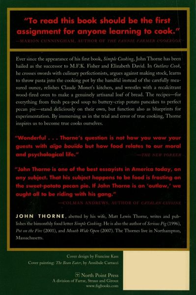 In essays ranging from his earliest cooking lessons in a cold-water walk-up apartment on New York's Lower East Side to opinions both admiring and acerbic on the food writers of the past ten years, John Thorne argues that to eat exactly what you want, you have to make it yourself. Thorne tells us how he learned to cook for himself the foods that he likes best to eat, and following along with him can make you so hungry that his simple, suggestive recipes will inspire you to go into the kitchen and translate your own appetite into your own supper.