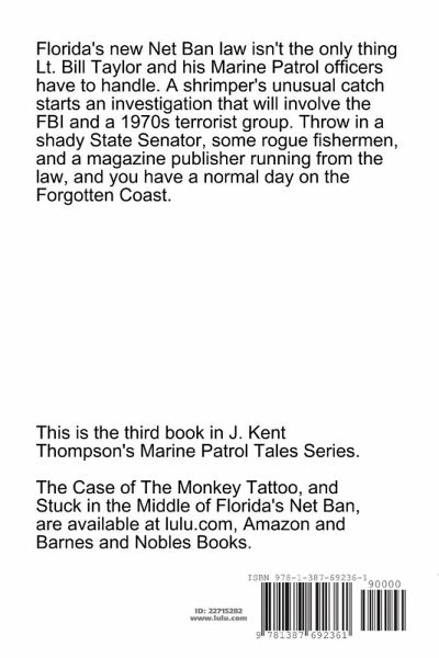 Florida's new Net Ban law isn't the only thing Lt. Bill Taylor and his Marine Patrol Officers have to handle. A shrimpers unusual catch starts an investigation that will involve the FBI and a 1970s terrorist group. Throw in a shady State Senator, some rouge fishermen, and a magazine publisher running from the law, and you have a normal day on the Forgotten Coast.