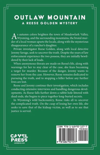 Wyoming private detective Reese Golden and Meadowlark Valley police detective Jeremy Savage investigate the disappearance of a local rancher's daughter, along with the brutal murder of her friend.