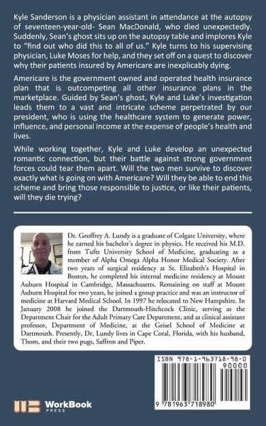 Kyle Sanderson is a physician assistant in attendance at the autopsy of seventeen-year-old- Sean MacDonald, who died unexpectedly. Suddenly, Sean's ghost sits up on the autopsy table and implores Kyle to "find out who did this to all of us." Kyle turns to his supervising physician, Luke Moses for help, and they set off on a quest to discover why their patients insured by Americare are inexplicably dying. Americare is the government owned and operated health insurance plan that is outcompeting all other insurance plans in the marketplace. Guided by Sean's ghost, Kyle and Luke's investigation leads them to a vast and intricate scheme perpetrated by our president, who is using the healthcare system to generate power, influence, and personal income at the expense of people's health and lives. While working together, Kyle and Luke develop an unexpected romantic connection, but their battle against strong government forces could tear them apart. Will the two men survive to discover exactly what is going on with Americare? Will they be able to end this scheme and bring those responsible to justice, or like their parents, will they die trying?