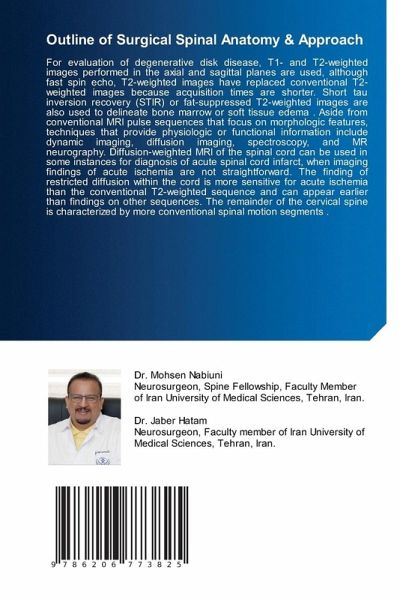For evaluation of degenerative disk disease, T1- and T2-weighted images performed in the axial and sagittal planes are used, although fast spin echo, T2-weighted images have replaced conventional T2-weighted images because acquisition times are shorter. Short tau inversion recovery (STIR) or fat-suppressed T2-weighted images are also used to delineate bone marrow or soft tissue edema . Aside from conventional MRI pulse sequences that focus on morphologic features, techniques that provide physiologic or functional information include dynamic imaging, diffusion imaging, spectroscopy, and MR neurography. Diffusion-weighted MRI of the spinal cord can be used in some instances for diagnosis of acute spinal cord infarct, when imaging findings of acute ischemia are not straightforward. The finding of restricted diffusion within the cord is more sensitive for acute ischemia than the conventional T2-weighted sequence and can appear earlier than findings on other sequences. The remainder of the cervical spine is characterized by more conventional spinal motion segments .