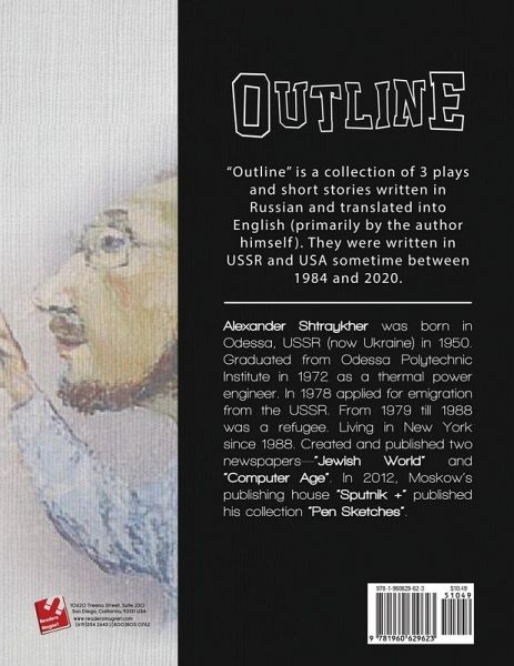 "Outline" is a collection of 3 plays and short stories written in Russian and translated into English (primarily by the author himself). They were written in USSR and USA sometime between 1984 and 2020.