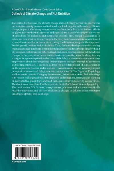The edited book covers the climate change impact broadly across the ecosystems including increasing pressure on livelihood and food supplies to the society. Climate change, in particular, rising temperatures, can have both direct and indirect effects on global fish production. Fisheries and aquaculture is one of the important sectors of agriculture for livelihood and nutritional security. Fish, being poikilothermic in nature are very sensitive to any change in the ecosystem. In commercial aquaculture, it is crucial to ensure that environmental rearing conditions are adequate, if not optimal, for fish growth, welfare and profitability. Thus, the book develops an understanding regarding changes in relevant environmental parameters and its affect in the growth and physiological performance of fish. Fish feeds on natural food organisms, but the adverse changes in the ecosystem attracts nutritionists to provide better food and feeding strategies for optimum growth and survival of the fish. it is become necessary to develop preparedness about the changes and their mitigation strategies through fish nutrition and feeding strategies. This book addresses the potential impact of climate change on the aquaculture sector under sections - Assessment of Global Warming Impact on aquatic resources and fish production, Adaptation in Fish Digestive Physiology and Biochemistry under Changing Environment, Prioritization of fish feed technology with respect to changing climate for adaptation and mitigation, Strategies and planning on reproductive physiology and feed management for biodiversity conservation. The chapters are contributed by the experts in the field of fish nutrition and physiology. The book assists fish farmers, entrepreneurs, planners and advisors specifically related to nutritional and physico-biochemical changes in fishes to adapt or mitigate the adverse effect of climate change.