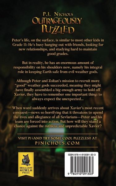 An adventure series filled with mystery, suspense, and fantasy - for kids ages 9-12 and teens Peter's life, on the surface, is similar to most other kids in Grade 11: He's busy hanging out with friends, looking for new relationships, and studying hard to maintain good grades. But in reality, he has an enormous amount of responsibility on his shoulders now, namely his integral role in keeping Earth safe from evil weather gods. Although Peter and Zoltan's mission to recruit more "good" weather gods succeeded, meaning they might have finally assembled a big enough army to hold off Xavier, they have to remember one important thing: to always expect the unexpected... When word suddenly arrives about Xavier's most recent conquest-news so horrifying that it threatens to upend the lives and allegiance of all Sevlarians-Peter and his team are forced into action. But how will they stand a chance against the ruthless and unpredictable Xavier?