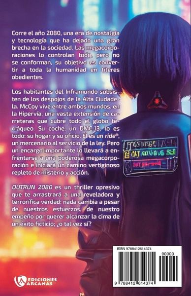 Corre el año 2080, una era de nostalgia y tecnología que ha dejado una gran brecha en la sociedad. Las megacorporaciones lo controlan todo, pero no se conforman, su objetivo es convertir a toda la humanidad en títeres obedientes.Los habitantes del Inframundo subsisten de los despojos de la Alta Ciudadela. McCoy vive entre ambos mundos, en la Hipervía, una vasta extensión de carreteras que cubre todo el globo terráqueo. Su coche, un DMC-13, lo es todo: su hogar y su oficio. Él es un ride', un mercenario al servicio de la ley. Pero un encargo importante lo llevará a enfrentarse a una poderosa megacorporación e iniciará un camino vertiginoso repleto de misterio y acción.OUTRUN 2080 es un thriller opresivo que te arrastrará a una reveladora y terrorífica verdad: nada cambia a pesar de nuestros esfuerzos, de nuestro empeño por querer alcanzar la cima de un éxito ficticio; ¿o tal vez sí?
