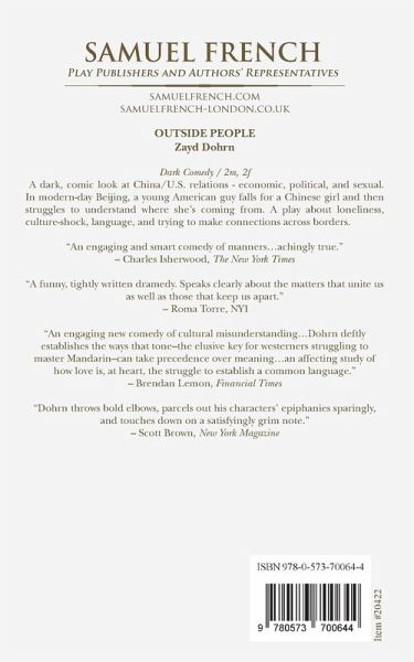 A dark, comic look at China/U.S. relations - economic, political, and sexual. In modern-day Beijing, a young American guy falls for a Chinese girl and then struggles to understand where she's coming from. A play about loneliness, culture-shock, language, and trying to make connections across borders.