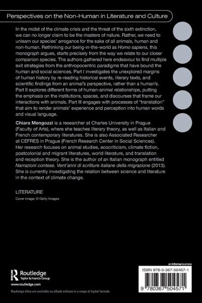 In the midst of the climate crisis and the threat of the sixth extinction, we can no longer claim to be the masters of nature. Rather, we need to unlearn our species' arrogance for the sake of all animals, human and non-human. Rethinking our being-in-the-world as Homo sapiens, this monograph argues, starts precisely from the way we relate to our closer companion species. The authors gathered here endeavour to find multiple exit strategies from the anthropocentric paradigms that have bound the human and social sciences. Part I investigates the unexplored margins of human history by re-reading historical events, literary texts, and scientific findings from an animal's perspective, rather than a human's. Part II explores different forms of human-animal relationships, putting the emphasis on the institutions, spaces, and discourses that frame our interactions with animals. Part III engages with processes of "translation" that aim to render animals' experience and perception into human words and visual language.